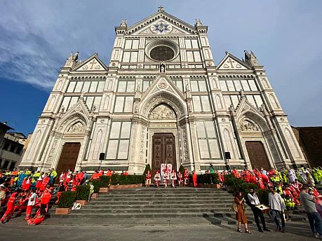 Alle 18 piazza Santa Croce ha accolto il Calcio Storico Fiorentino per rendere omaggio ai medici, agli infermieri e agli operatori sanitari che sono stati in prima linea durante l’epidemia. Il Corteo Storico della Repubblica Fiorentina ha reso omaggio al mondo del volontariato per il suo impegno nei mesi della pandemia.