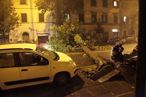 FIRENZE — Un muro d'acqua che ha provocato l'allagamento delle strade e che ha visto intrecciarsi le chiamate per il maltempo con quelle per la scossa di terremoto avvertito anche nel capoluogo toscano in seguito alla violenta scossa di magnitudo 5.9 con epicentro in provincia di Macerata.