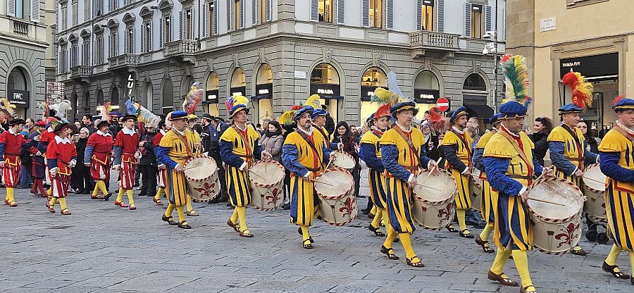Turisti e fiorentini fermi a guardare. Un Corteo di cui conosciamo tutti i rituali e mai ci stanchiamo di seguire.