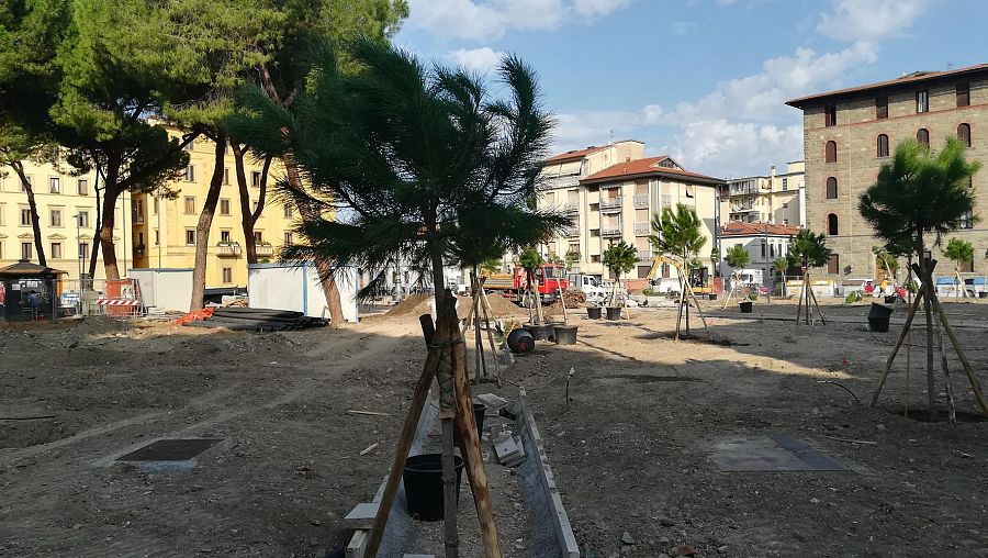 FIRENZE — Nel cantiere di piazza della Vittoria sono arrivati i nuovi alberi che sostituiranno i pini abbattuti durante la prima fase dei lavori per la riqualificazione con la verifica e l'abbattimento delle specie classificate a rischio, tra le proteste dei cittadini. I piccoli esemplari sono arrivati nei vasi per essere messi a dimora secondo il disegno del progetto.