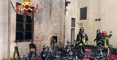 L'incendio ha interessato cinque ciclomotori parcheggiati. Sul posto sono intervenuti i vigili del fuoco e i sanitari del 118
