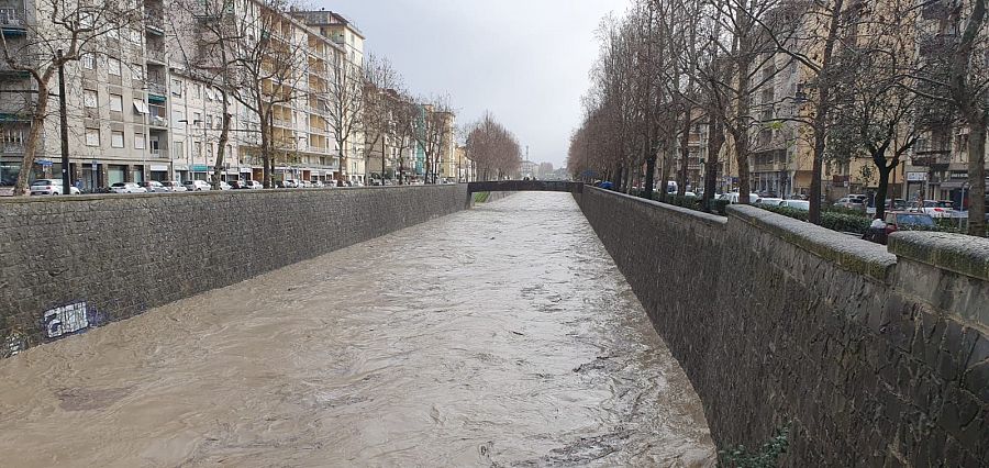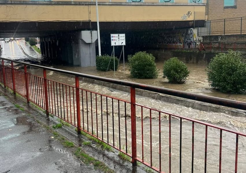 Il nubifragio ha gonfiato i torrenti che attraversano l'abitato. Zone senza corrente, auto in trappola in un sottopasso. Problemi anche in provincia