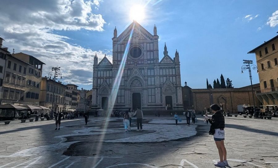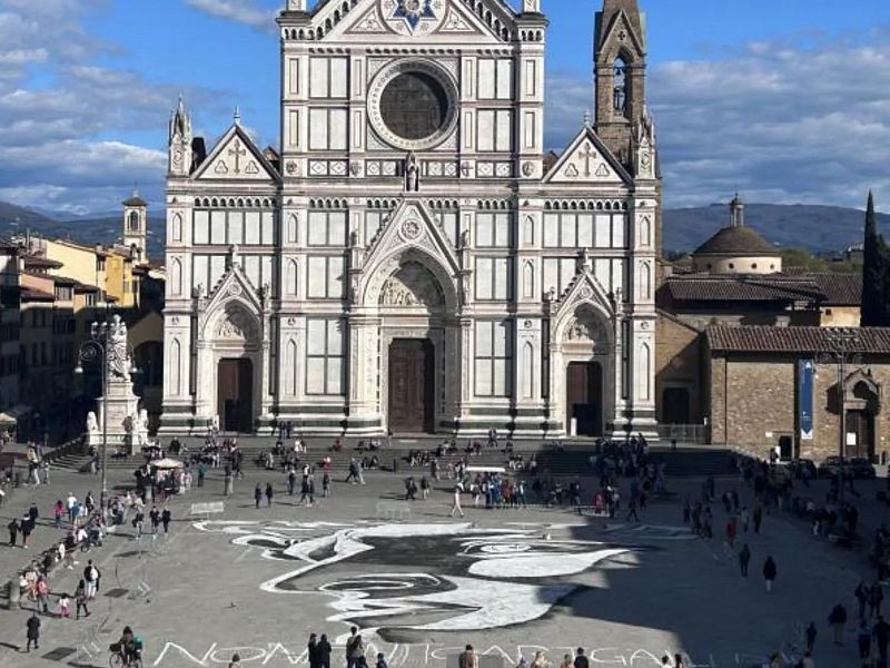 Acqua e pigmento, l'opera è stata portata a compimento fra sabato e domenica scorsi. Le immagini sono state diffuse sui social anche dall'Opera di Santa Croce.