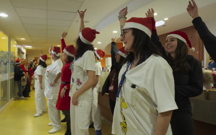 Cappello rosso in testa, i sanitari dell'ospedale pediatrico protagonisti di una coreografia sulle note di "Santa Claus is comin' to town"