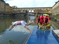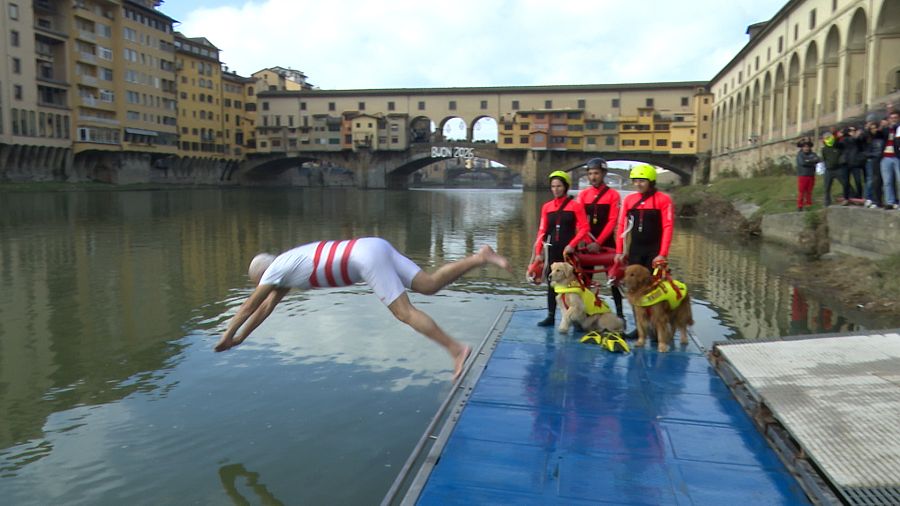 FIRENZE — Questa mattina, come da tradizione, si è svolto il tuffo in Arno dalla piattaforma della Canottieri Firenze con il presidente della Regione Toscana Eugenio Giani.