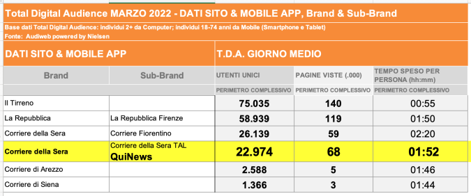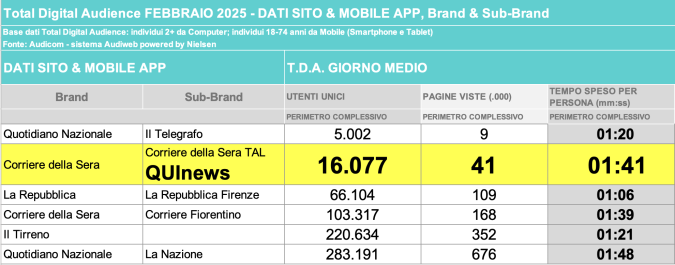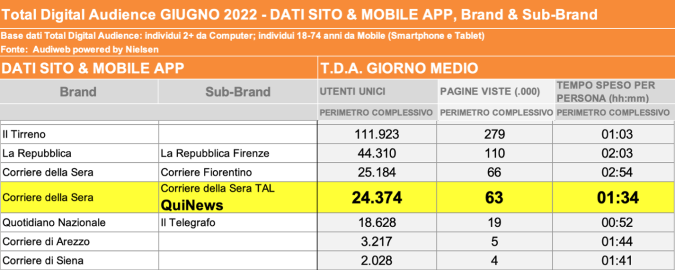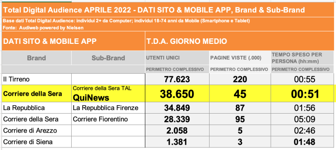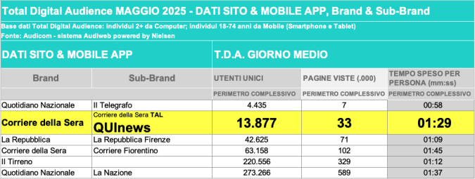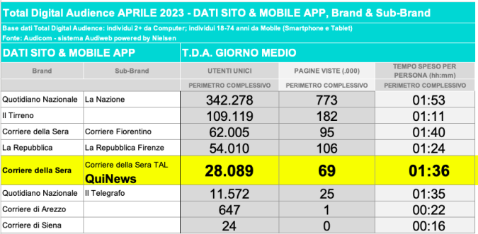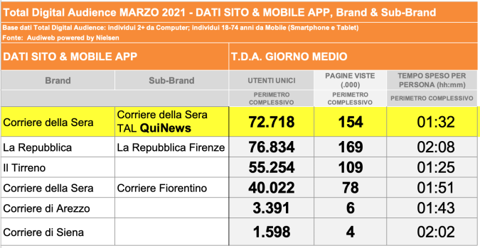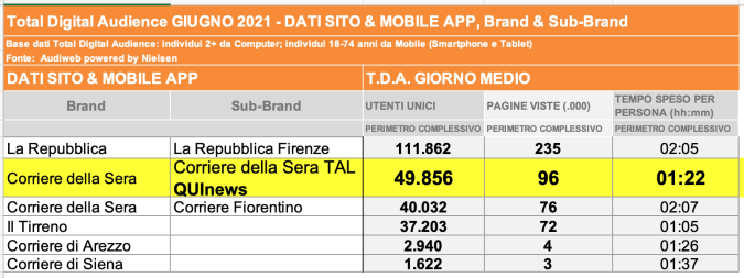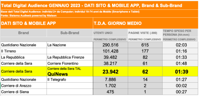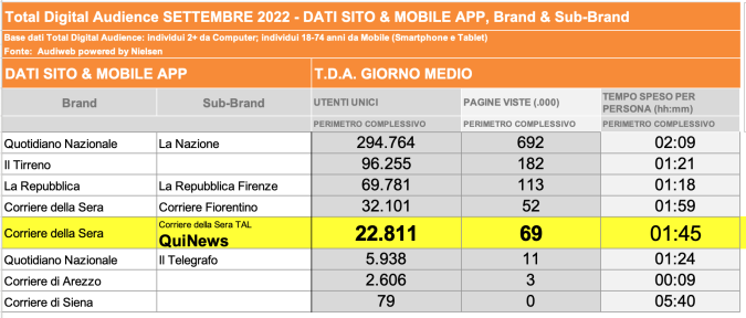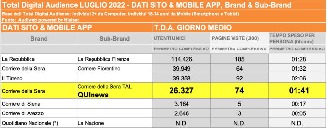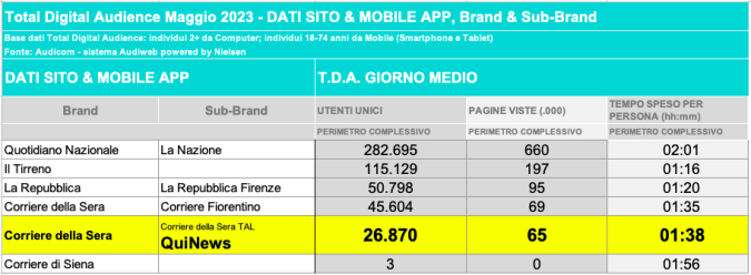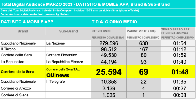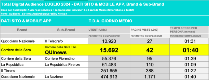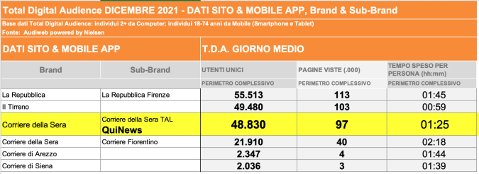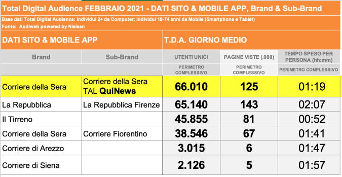 I DATI AUDIWEB DEL MESE DI NOVEMBRE 2020 NON SONO PRESENTI PER ADEGUAMENTO TECNICO DELLA RILEVAZIONE DEL NETWORK QUINEWS COME SUB BRAND DEL CORRIERE DELLA SERA