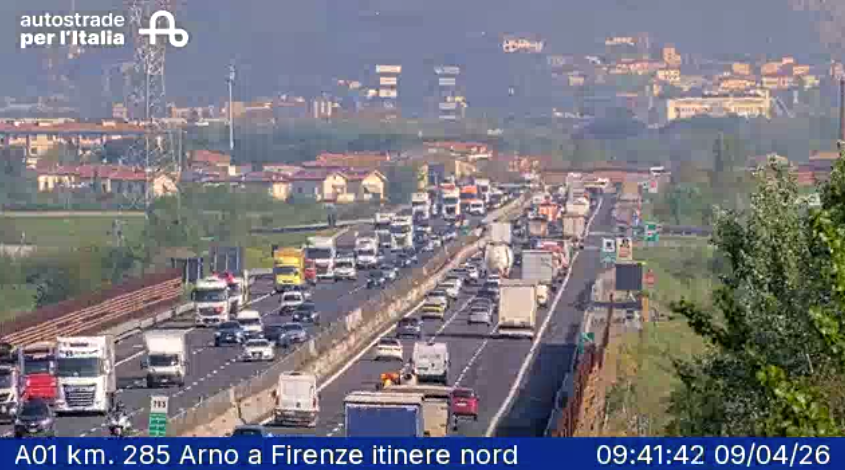 Sulla Milano-Napoli, alle 8 due mezzi pesanti si sono scontrati al chilometro 276,7 ovvero tra Firenze Scandicci e il bivio con la A1 Direttissima in direzione Bologna. Autostrade per l'Italia ha registrato 4 chilometri di coda dopo che, in corrispondenza sinistro, il traffico è stato incanalato su una corsia per consentire le operazioni di soccorso.