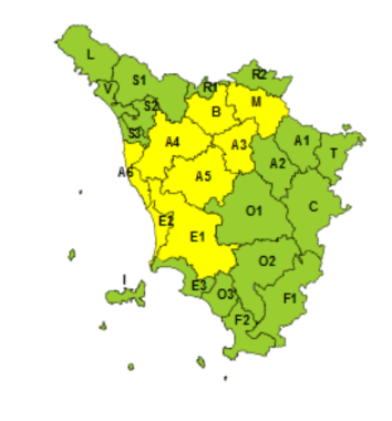 La sala operativa della protezione civile regionale ha emesso un codice giallo per la giornata di domani. Le zone interessate